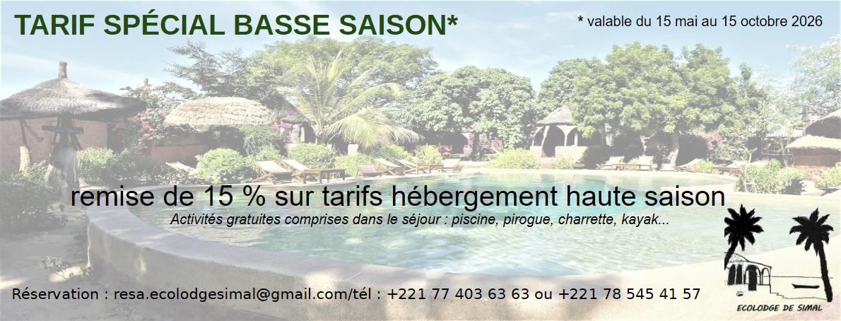 | Chambre single | 41 000 FCFA (63 €) | 49 000 FCFA (75 €) |